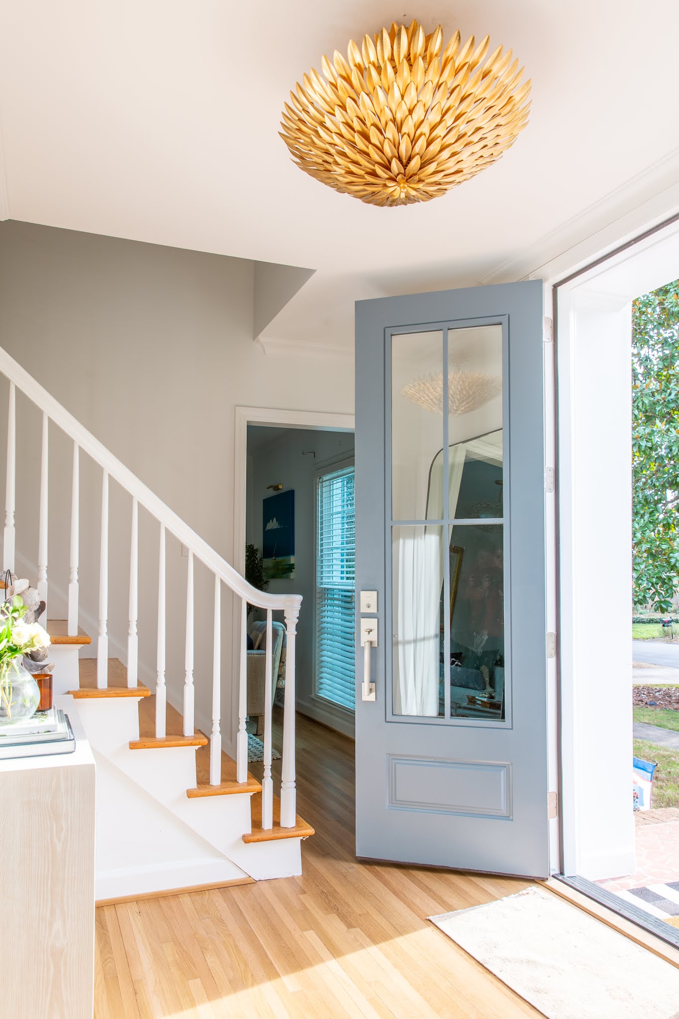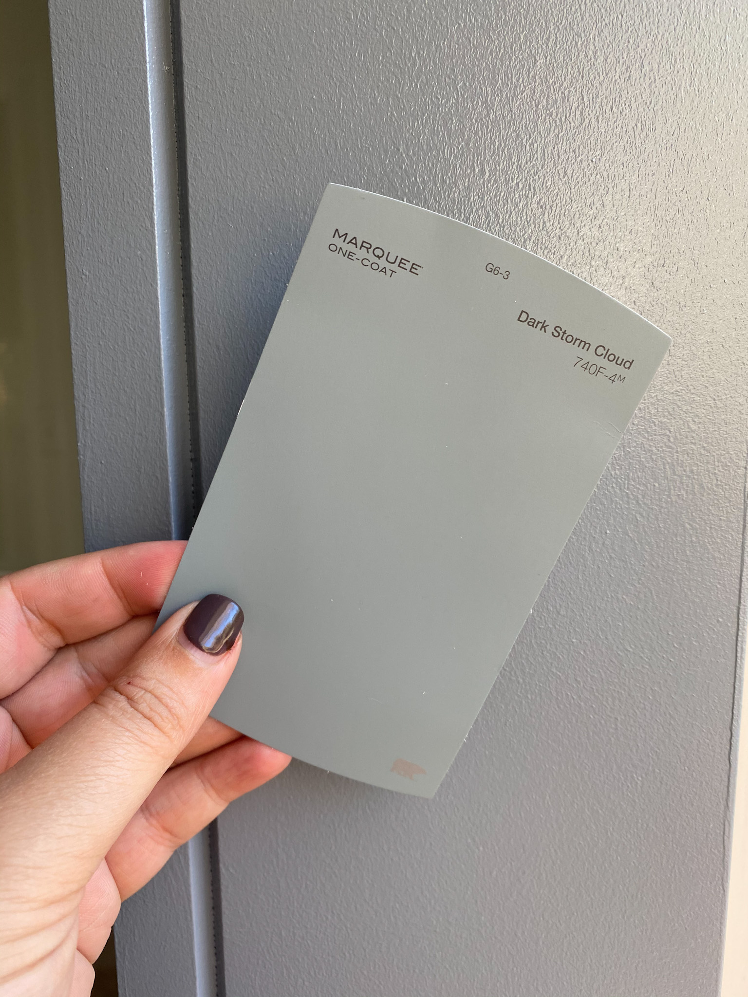 The door does get direct natural light for a large portion of the day, so when it’s in the light, it takes on a bluer tone. When it’s shaded, the gray tones are more visible.