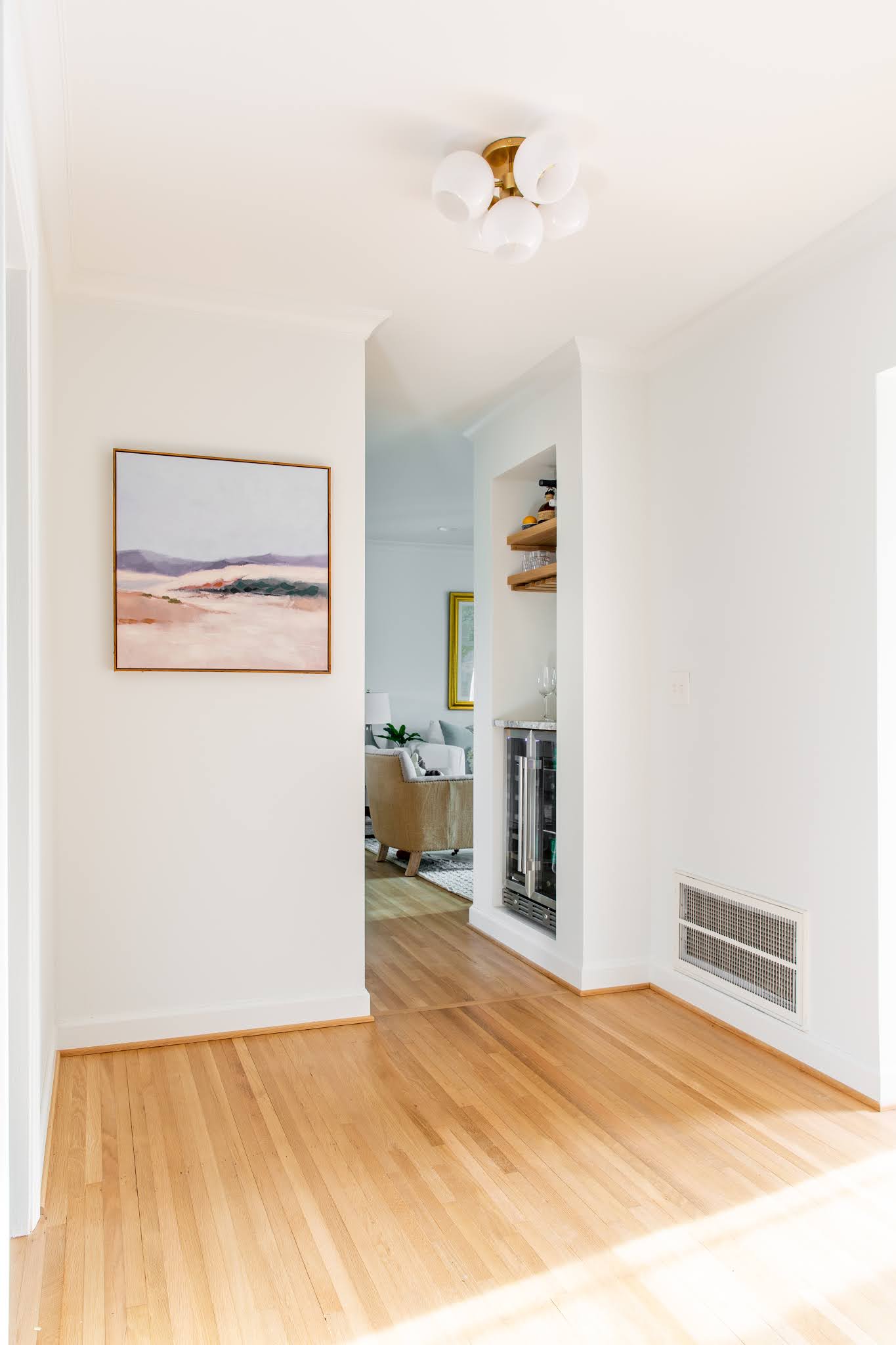 All walls, ceiling and trim in the main spaces are Wedding Veil by Benjamin Moore.