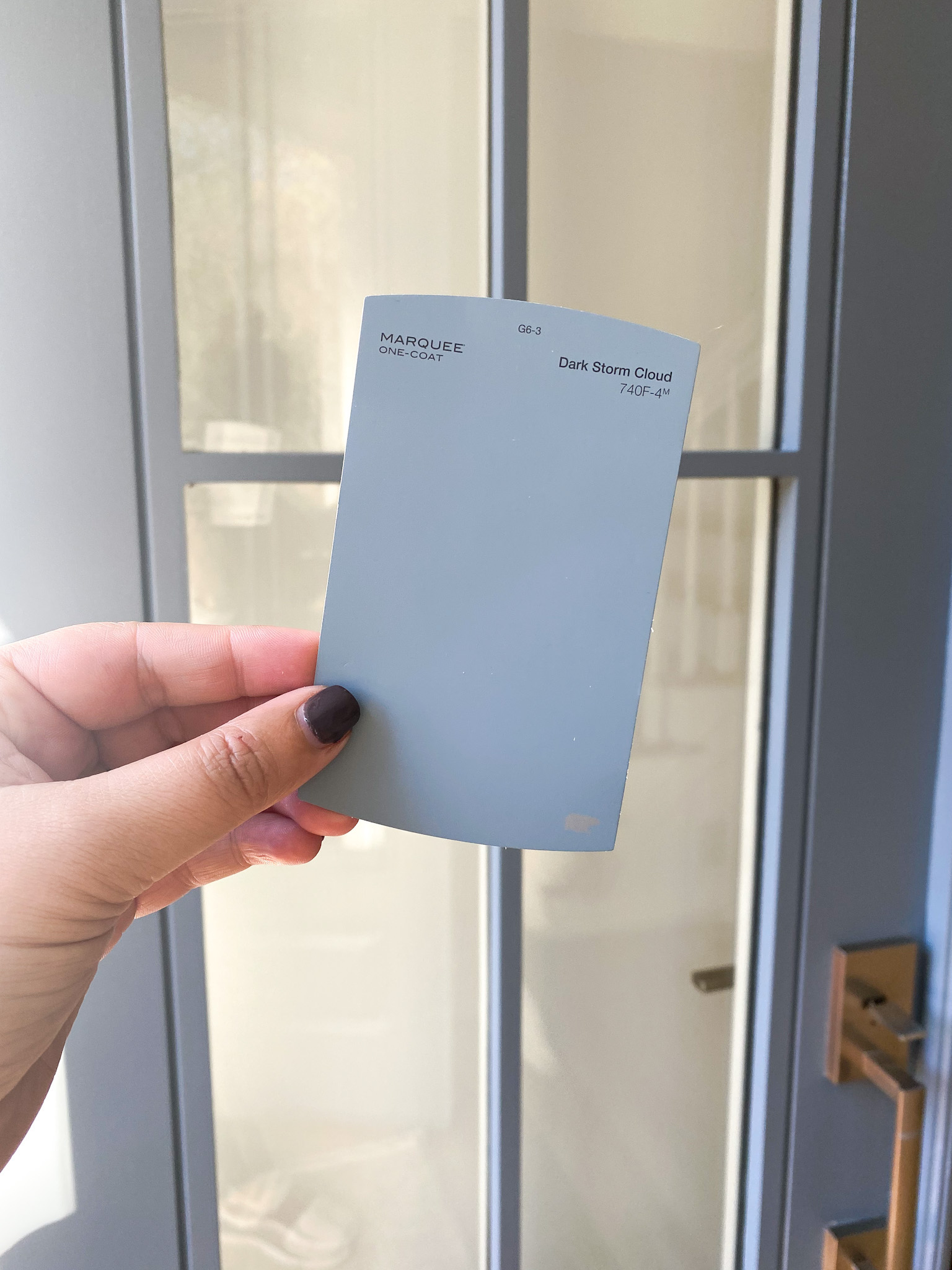 Our front doors are painted Dark Storm Cloud by Behr.